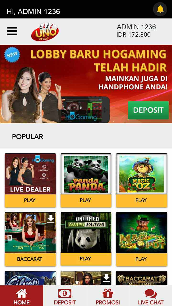 4. Silahkan menikmati permainan di UNOVEGAS.